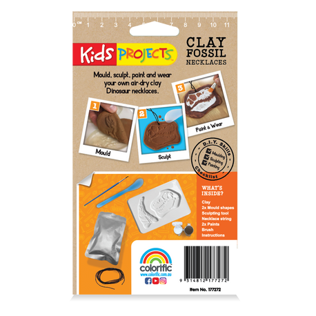 Mould, sculpt, paint and wear your own air-dry clay necklace with Kids Projects Clay Fossil Necklace. Follow the instructions to create your DIY fossils and show off your necklaces wherever you go. This kit is perfect for animal lovers and future palaeontologists!